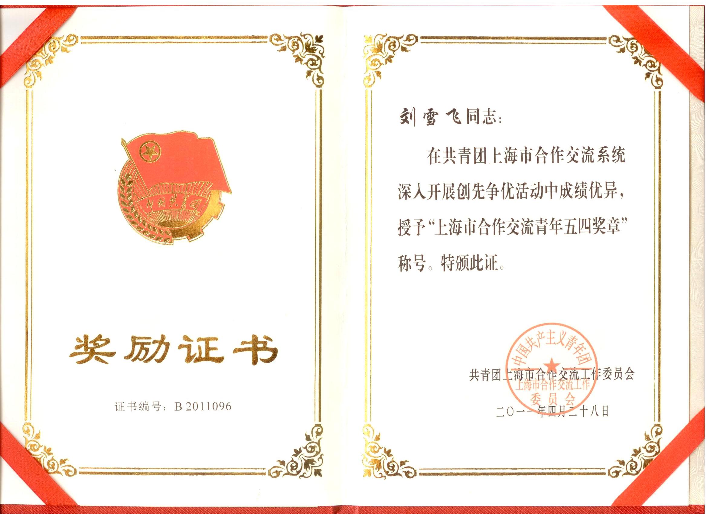 2011年上海合美电子科技有限公司总经理刘雪飞先生荣获“上海市合作交流青年五四奖”